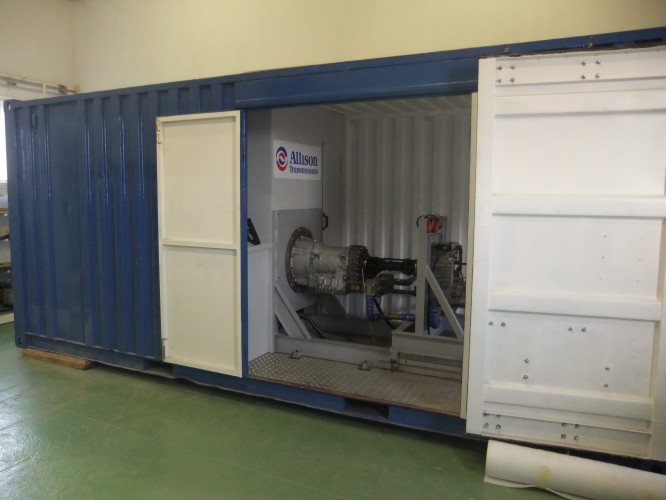 Az Allison automata váltók szerviz tevékenysége során speciális járművek és gépek automata / félautomata nyomaték (sebesség) váltóit javítjuk. Az ebből szerzett tapasztalatainkat felhasználva, az Európai Unió, illetve az Európai Regionális Fejlesztési Alap támogatásával kifejlesztettünk egy különféle típusú automata / félautomata nyomaték (sebesség) váltók beépítés nélküli tesztelésére alkalmas mobil tesztpadot, amely a piacon egyedülálló módon, a szabványos konténerbe épített kivitelezésnek köszönhetően, rendkívül egyszerűen szállítható. A mobil kivitel lehetővé teszi helyhez kötött vasúti járművek, dízel motorkocsik, vasúti pályaépítő gépek, olajipari, bányaipari berendezések, illetve földmunkagépek automata / félautomata nyomaték váltóinak helyben történő tesztelését, javítását is. Műszaki jellemzők: - Szabványos közúti, légi, illetve tengeri szállításra alkalmas konténerbe épített kivitel az egyszerű szállíthatóság érdekében (méretek: 6m x 2,4m x 2,335 m / 3000 kg) - 1 órán belül szállítható állapotba hozható, illetve beüzemelhető - Külső energia ellátástól független, szélsőséges időjárási körülmények között üzemeltethető - CAN kommunikációra alkalmas diesel motor, mint meghajtó és energiatermelő egység - A tesztpad alkalmas a korábban gyártott hidraulikus vezérlésű és a jelenlegi elektronikus vezérlésű váltók tesztelésére - A lehető legkevesebb előkészítést igénylő, gyorscsatlakozó felülettel ellátott kivitel - A teljes tesztelés egy fő részére maximum 4 órát vesz igénybe - Szabványos alkatrészekből (kardán, kardánperem, csapágyazás, bordástengelyek, illesztő koszorúk, stb.) felépített kivitel, a minél egyszerűbb és gyorsabb pótalkatrész ellátás érdekében - Az eredeti vezérlő elektronikákkal alkalmas a tesztelésre - A CAN rendszer felhasználásával a lehető legtöbb mérési információ begyűjtése elektronikus mérőszenzorok és egy központi adatgyűjtő szoftver alkalmazásával - További fejlesztési lehetőség a központi járművezérlő hardverek és szoftverek teszteléséhez, valamint előre definiált szabványos útprofilok alapján történő automatikus tesztelés, adatgyűjtés és hiba kiértékelés végrehajtására - Az adatgyűjtő rendszer szabványos SAE J-1939-es adatbuszra épül, így a meghajtó motorok széles palettája alkalmazható